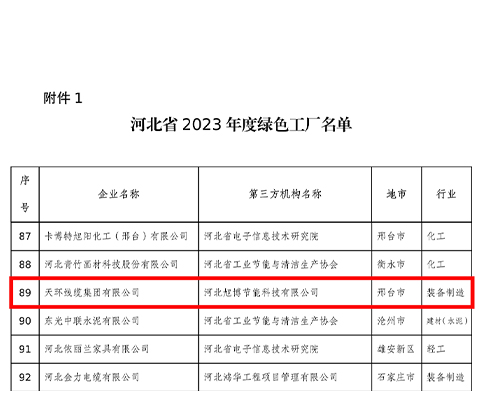 天環線纜集團有限公司入選河北省2023年度“綠色工廠”名單